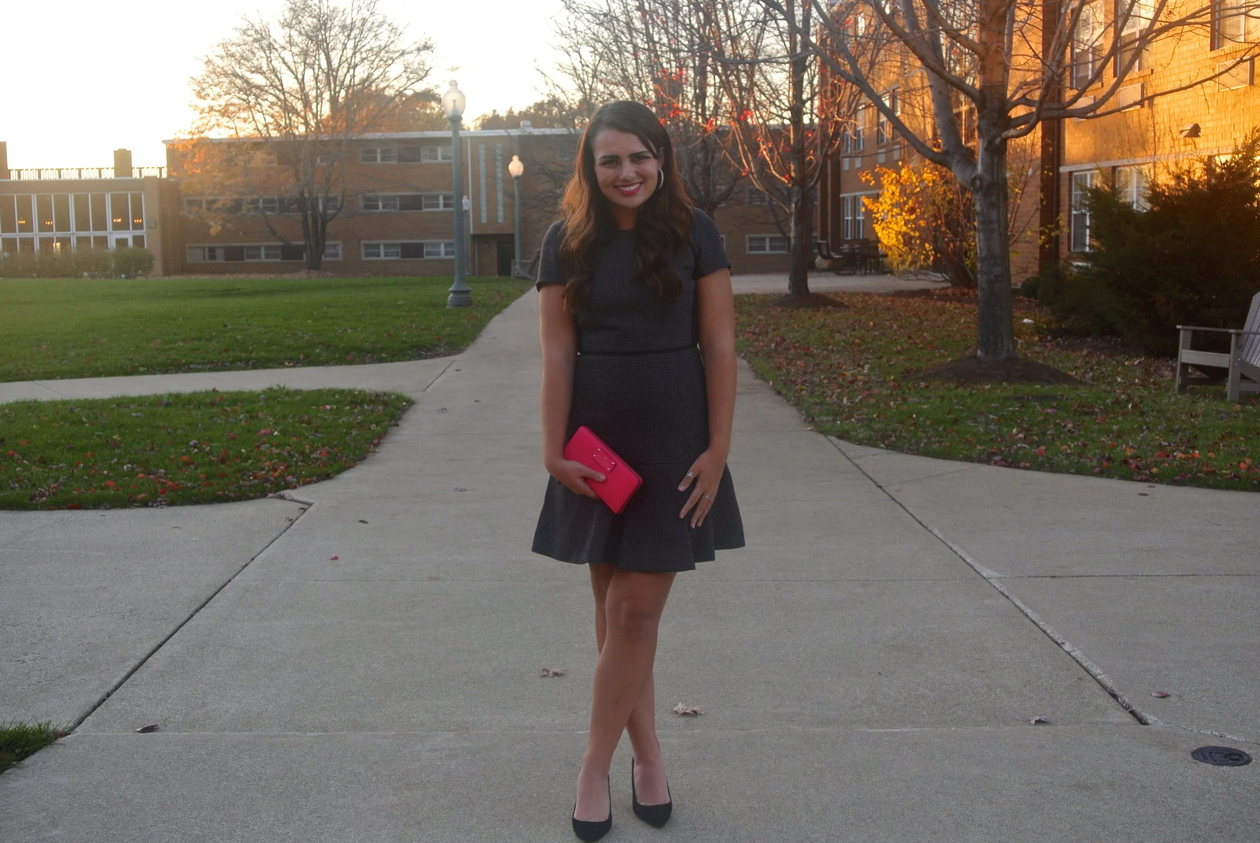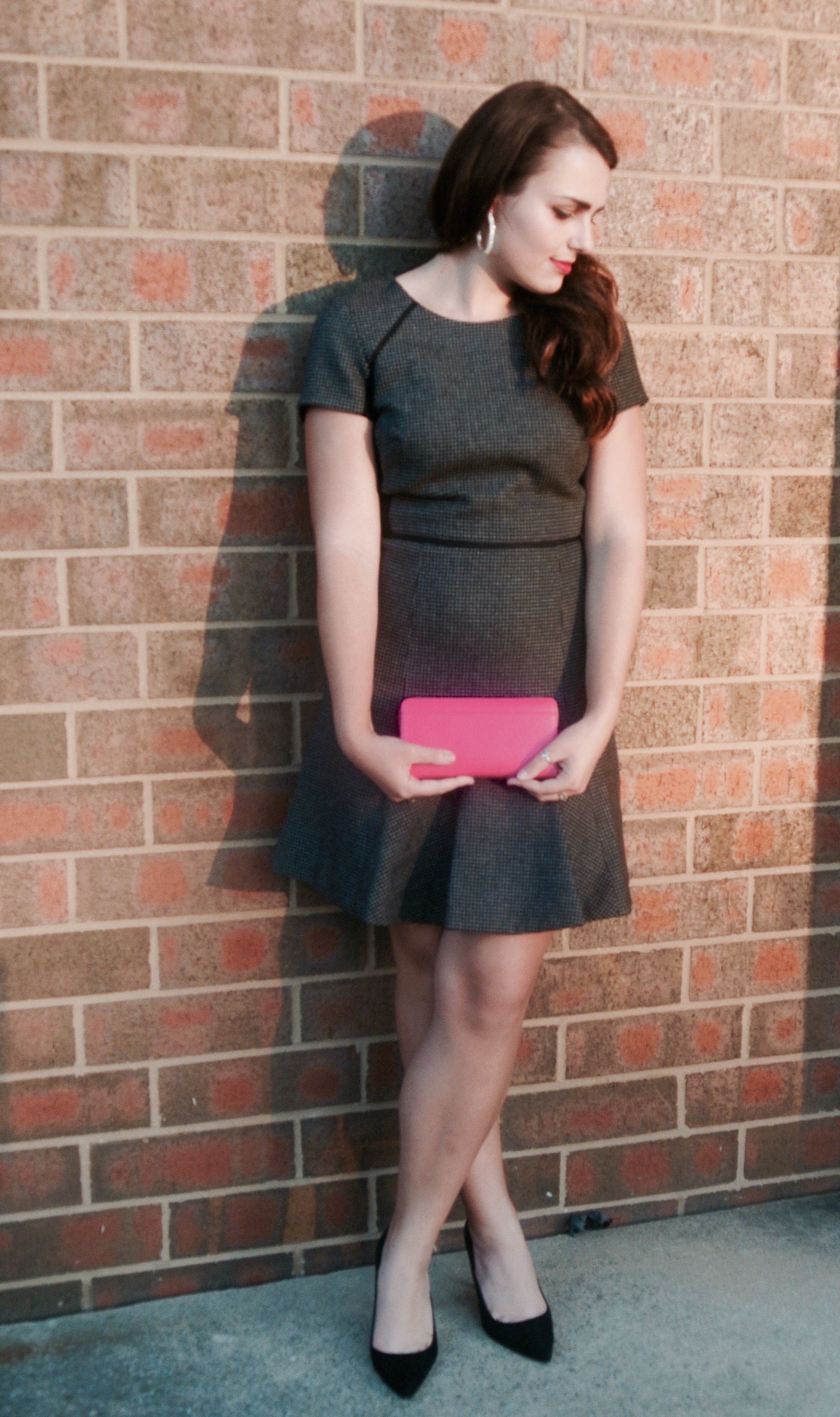 Brown and black make a good color combo, so it's a smart idea to make your shoes the same color. Here I am wearing my infamous yet classic black pumps from J. Crew. They are a pain in the A-word to walk in, but they sure make any outfit a 10/10!