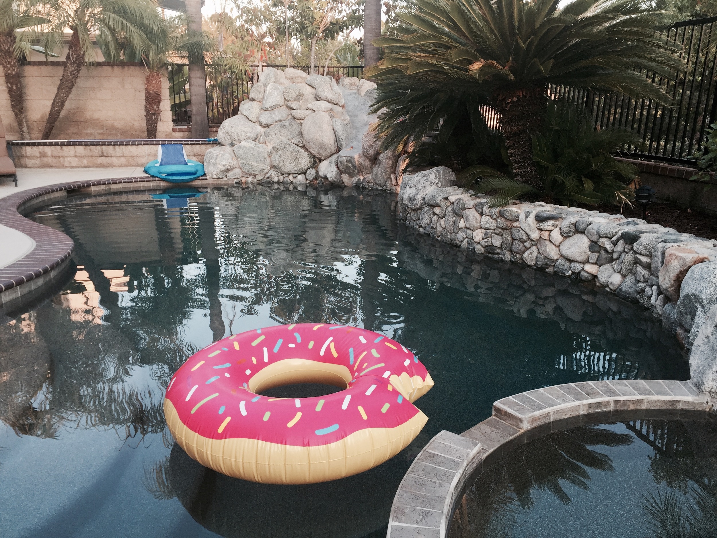 We drove back to our friends' house and decided to have a small pool party with dinner included. I was super excited because I finally got to use my new donut float! It was so fun and relaxing to float around in the nice pool, I still DONUT wish that paradise had to end!