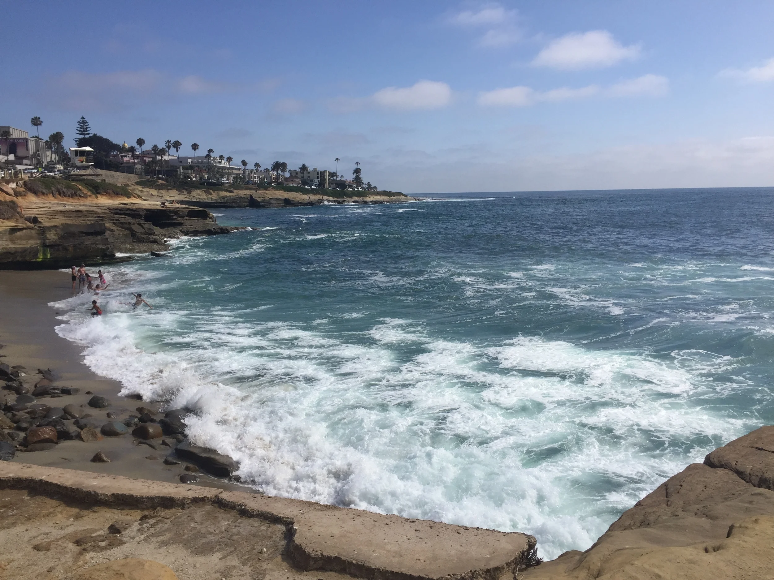 One of my favorite beaches in California is La Jolla. The love the way the rocks are formed along the shoreline with grottos in between. The color of the ocean was a sapphire blue, and the best part was watching sea lions swim near the beach!