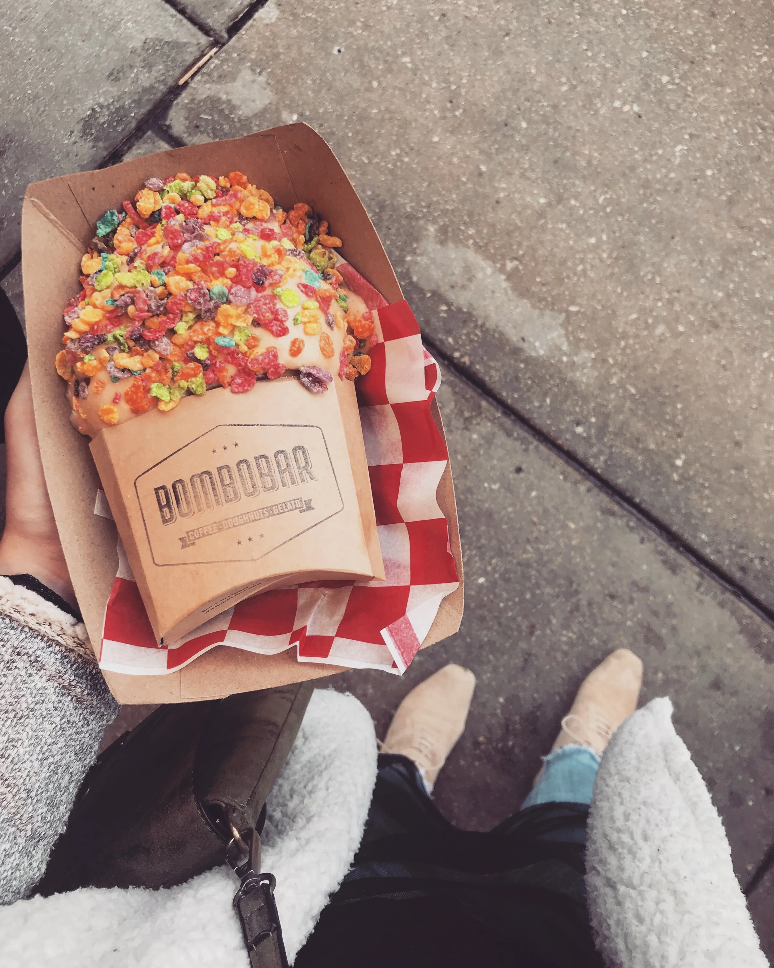 • I had a "Bombolato", a donut with vanilla gelato, salted caramel icing, and fruity pebbles. It sounds like a heart attack, but the calories are "cerealisly" worth it!